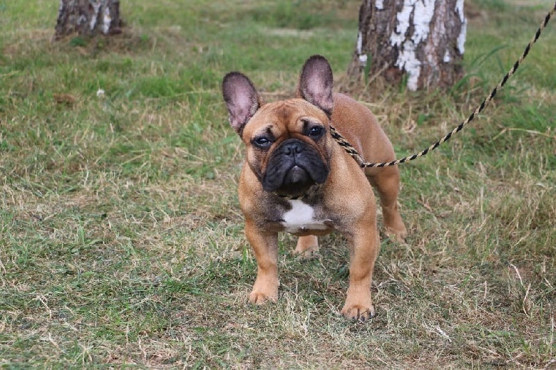 Exc tête large et carrée, exc forme des yeux et couleur, exc stop, exc oreilles, exc mâchoires, exc épaules, exc antérieurs, jolis pieds avec ongles foncés, exc poitrine côtes arrondie, dos solide,léger roch back, arrière main un peu droite, queue courte et présente, belle robe, exc mouvement, exc présentation.